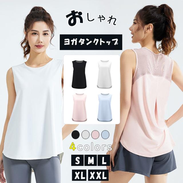 ヨガトップス ピラティスウェア ヨガウェア トップス レディース タンクトップ スポーツウェア 大きいサイズ カットアウト 無地 伸縮性 メッシュ 速乾 吸汗 軽量 通気性 フィットネスウェア トレーニングウェア ウォーキング ラウンドヘム