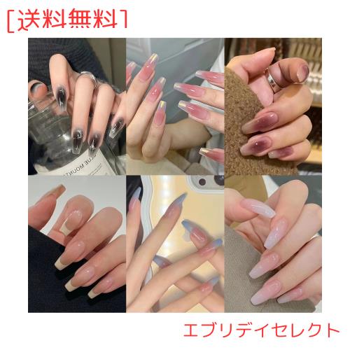 ◆商品名:6パック(144個入り)ネイルチップ 人気 ミディアムデザイン, NIUANIUA ショート つけ爪 かわいい コフィン型 グルーオンネイルセット ネ