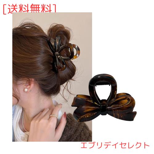 【おしゃれなデザイン】べっ甲風の落ち着いた配色が上品なバンスクリップ。大人のヘアスタイルに馴染むリボンなデザインがこなれた印象へ導いてくれます。韓国、SNSでも大流行のシンプルでオシャレなヘアクリップです。シンプルなデザイン、ファッショナブルなスタイル、髪に輝きを与えます。あらゆる年齢の女性と女の子に最適です。