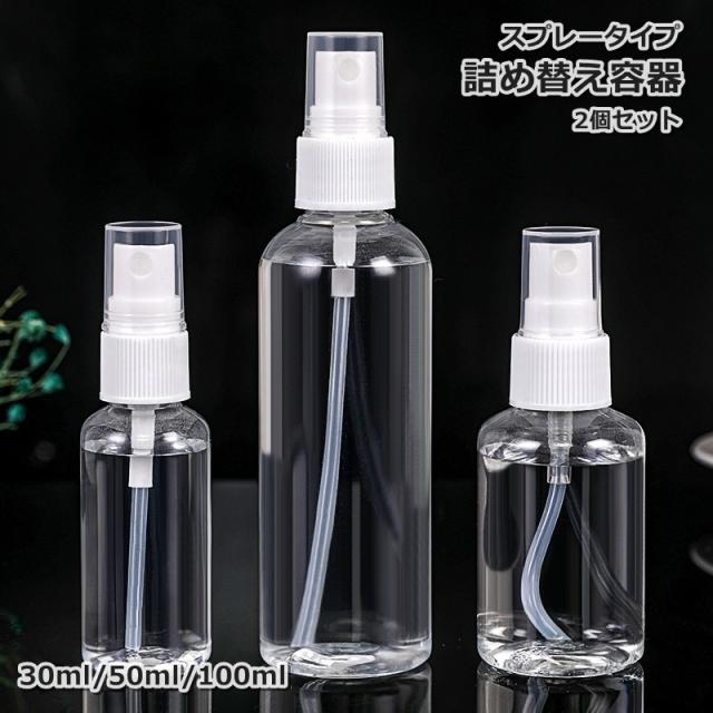 詰め替え容器 2個セット 詰め替えボトル 30ml 50ml 100ml スプレーボトル 液体 クリア ミニ 携帯用 持ち運び