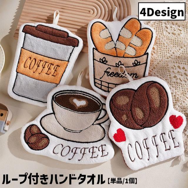 ハンドタオル タオル 手拭き ループ付き 台所 流し台 洗面所 バス用品 キッチン カフェ 珈琲 コーヒー パン バゲット コー