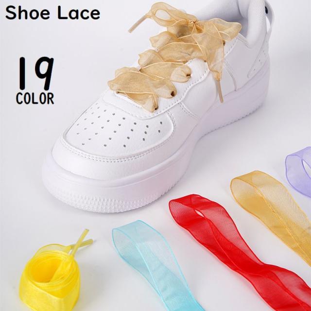 靴紐 靴ひも シューレース レディース オーガンジー風 リボン 幅広 平型 透け感 ふんわり 無地 可愛い スニーカー シューズ
