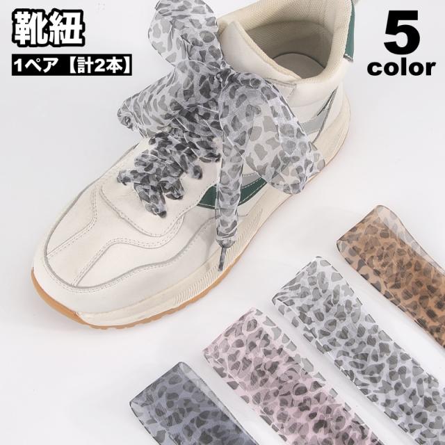 靴紐 靴ひも シューレース 1ペア 計2本 リボン 幅広 ヒョウ柄 靴アクセサリー シューアクセサリー 靴ケア用品 スニーカー