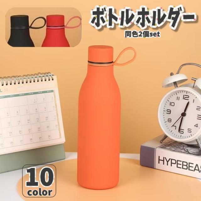 ボトルホルダー 水筒ホルダー 2個セット 手提げ 手さげ 手持ち ストラップ 紐 伸縮性 伸びる シリコン ケース アウトドア