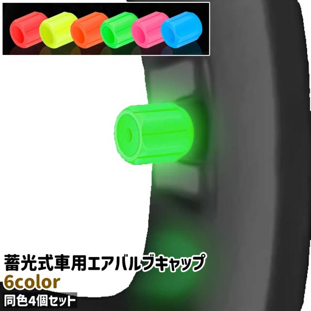 車用エアバルブキャップ 4個セット 4個入り 蓄光式 光る シンプル 車 自動車 タイヤ ホイール エアバルブ 装飾 飾り おし