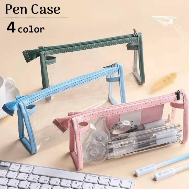 ペンケース 筆箱 ペン入れ ファスナー 透明 クリア 中身が見える 筆記用具入れ 文房具入れ 小物入れ 収納 大容量 ステーショ