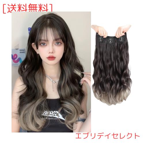 Limakara 襟足ウィッグ 3枚セット クリップ式 カール ロング 55cm エクステ 巻き髪 インナーカラー ワンタッチ 簡単装着 ボリュームアッ