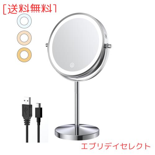 ARREBOL ( アレボル)拡大鏡 女優ミラー卓上ミラー 8インチ 両面ミラー USB充電式 10倍拡大鏡 化粧鏡 LEDライト付きミラー スタンドミラ