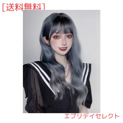 Eileen ロング カール 青グレー ウィッグ パーマ フルウィッグ 自然な質感 巻き髪 姫髪 ふわふわ 耐熱 ウィッグ 風追い少女 小顔 可愛い