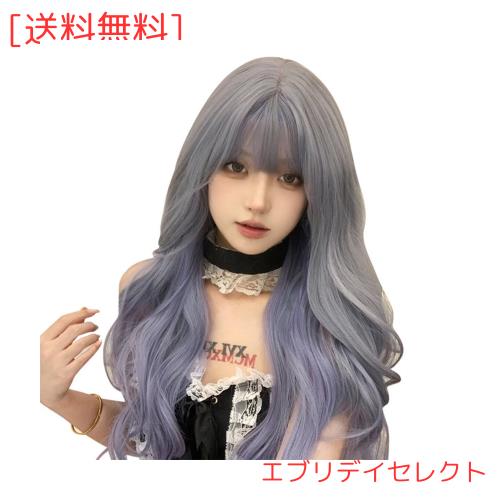 Eileen ロング グレー×パープル ウィッグ パーマ フル レディーズ かつら 自然 原宿系 人気 小顔効果 可愛い ネット付き