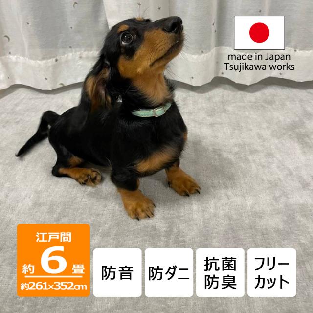 カーペット 六畳 極厚 防音ペットもよろこぶ 江戸間 6畳 261×352cm 厚手 防ダニ 丸巻き保管 抗菌防臭 犬 猫 ペット対応 グレー マット ラグ 日本製 フリーカット ハサミ 切れる オールシーズン 絨毯 じゅうたん 6帖 辻川産業株式会社 Tsujikawa