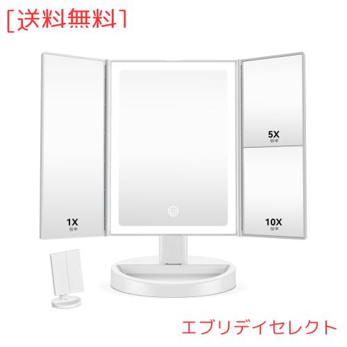 Auxmir 女優ミラー 拡大鏡 卓上ミラー 68個LED ライト付き 三面鏡 卓上鏡 5/10倍 3光色 折りたたみ 180°回転 鏡 メイク タッチ式 明る