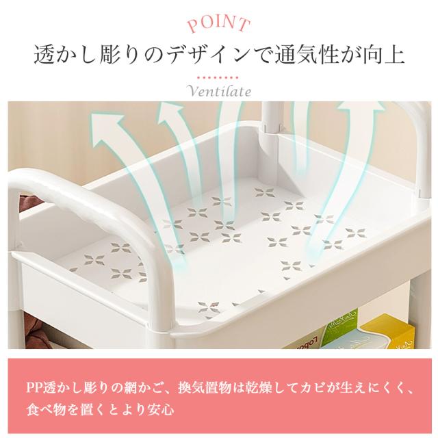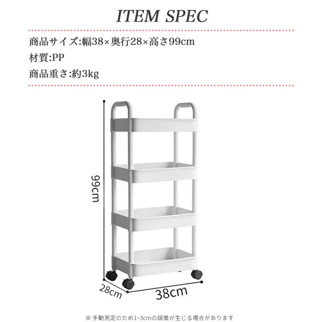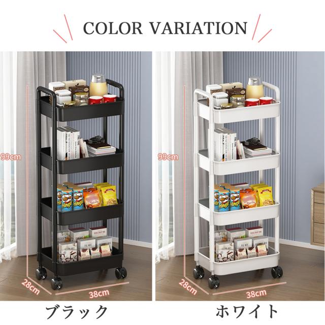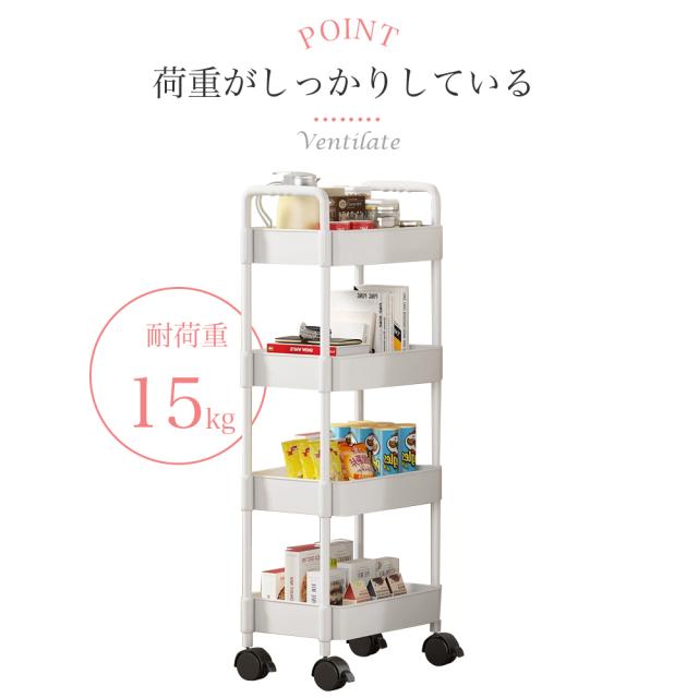 【軽くて丈夫の4段のラック】非常に頑丈です。カゴのメッシュが細かくて物を載せやすくしています。またトレーを外すことができ、掃除もしやすくなります。中身が見えますので、探しやすく通気性も良くて便利です。