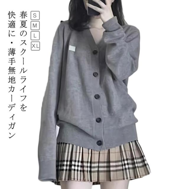 | 春夏のスクールライフを快適に・薄手無地カーディガン 無地ニットなので、普段はもちろん色々なシーンで着用できるカーディガンです。 首元を綺麗に見せるVゾーンと、程よくゆとりを持たせたシルエットが清楚さを演出 プチプラだから色違いで揃えて制服コーデを楽しもう! | |