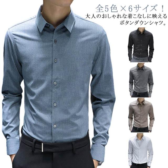 ワイシャツ 長袖 ノーアイロン メンズ カッターシャツ スリム ストレッチ Yシャツ ノーアイロン ノンアイロンシャツ ドレスシャツ 長袖ワイシャツ 形態安定 ボタンダウン ビジネスシャツ おしゃれ 紳士 送料無料
