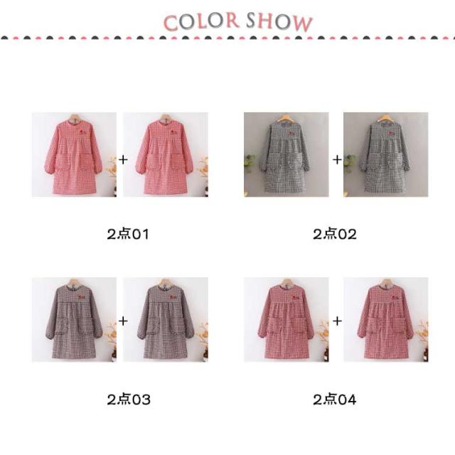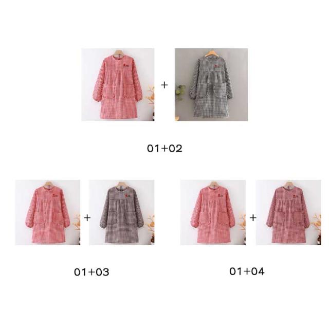 | 【2点セット】 動きやすい、可愛いチェック柄! 台所仕事や掃除などの家事をするときに活躍する割烹着。 機能的な2つのポケット装備 袖口はやさしいタッチのゴム仕様 動きやすい長袖 どんなテイストにもシーンにもマッチするシンプルななデザイン。 | |