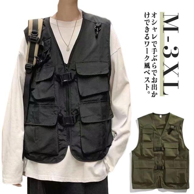ワーク風 撮影 ベスト カジュアルベスト 大容量 ポケット 手ぶらベスト ミリタリー ビター系 フィッシングベスト ジレ ワーク服 大きいサイズ 山歩き 登山服 送料無料 メンズ 作業着 カジュアルベスト プレゼント 春夏 お出かけ 原宿系 作業服 カジュアル 父の日