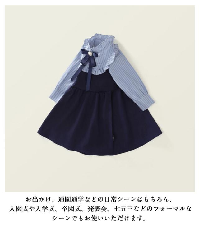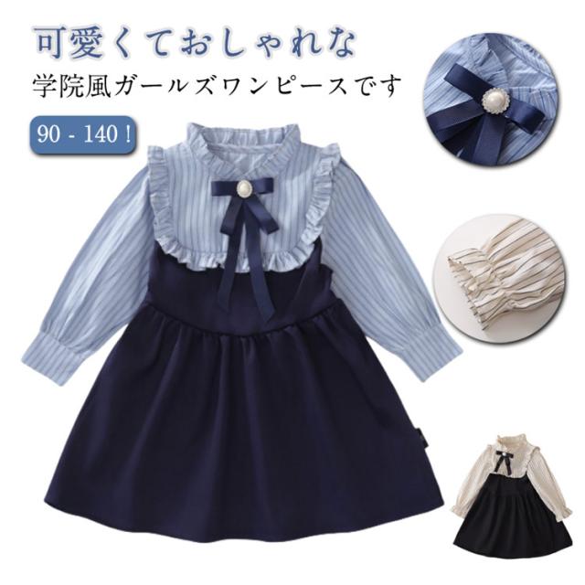 | 1枚で肌寒い春秋季節のスタイリングの完成! 可愛くておしゃれな学院風ガールズワンピースです。 胸元のリボンとフリルが可愛らしさと優雅さに溢れていて、着た瞬間に甘くキュートな女の子に変身します! お出かけ、通園通学などの日常シーンはもちろん、入園式や入学式、卒園式、?表会、七五三などのフォーマルなシーンでもお使いいただけます。 | |