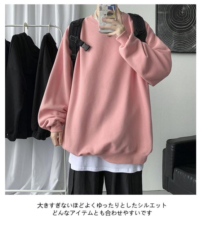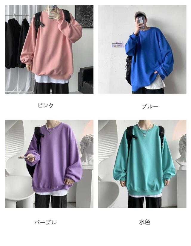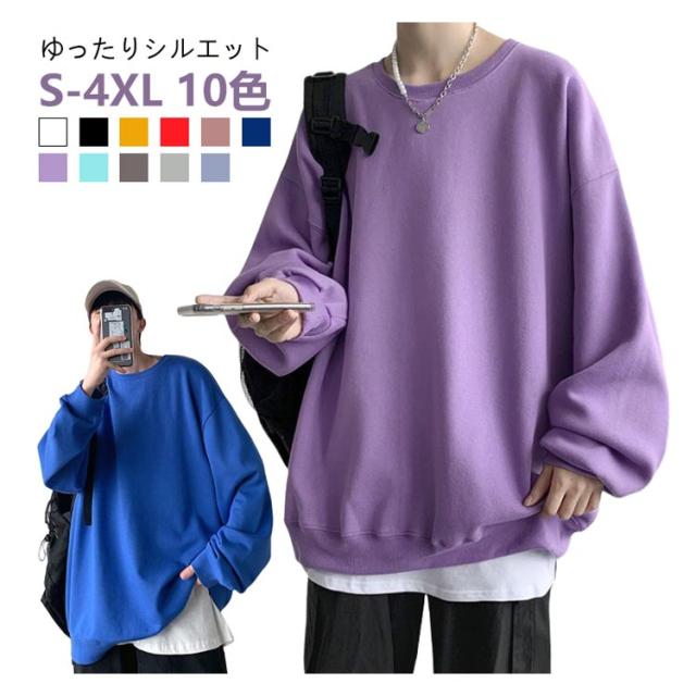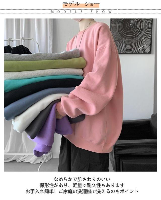 メンズ レディース トップス シルエット 全10色 スウェット 部屋着 クルーネック カジュアル 大きいサイズ ゆったり プルオーバー 無地 全10色 アウトドア 通学 通勤 ビッグシルエット オーバーサイズ ルームウェア 長袖 おしゃれ シンプル 春