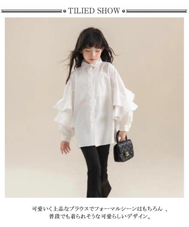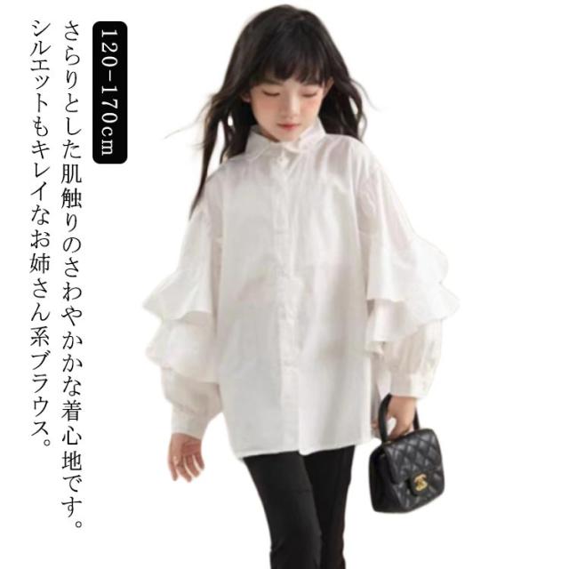 姫系 韓国子供服 春着 長袖 誕生日 女の子 ホワイト 結婚式 高校生 シャツブラウス 白シャツ ゆったり 小学生 秋着 ブラウス 卒業式 体育祭 シャツ 女の子 中学生 文化祭 学園祭 120cm 130cm 140cm 150cm 160cm
