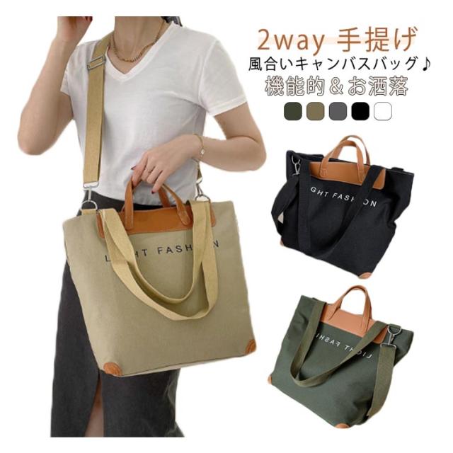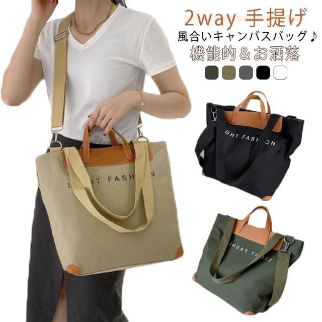 トートバッグ レディース ショルダーバッグ 大容量 キャンバストートバッグ キャンバス地 布 2way シンプル 買い物バッグ トートバッグ ロゴ 手提げ 肩掛け 通学 通勤 スタイルオンバック