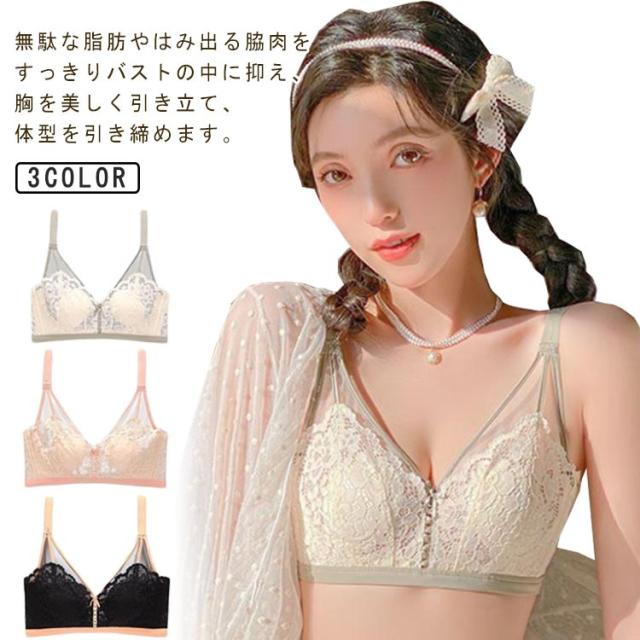 胸が小さく見えるブラ ノンワイヤー 着痩せ 蒸れない レース ブラジャー 小さく見せるブラ 締め付け感ゼロ 薄手 美胸美背 蒸れない 通気性抜群 柔らかい 脇高でしっかり補正 しっかりブラ