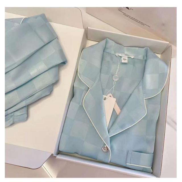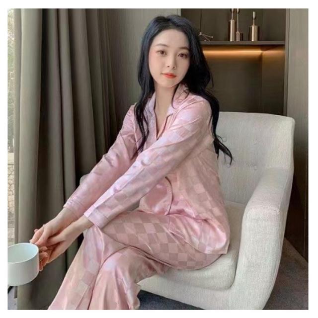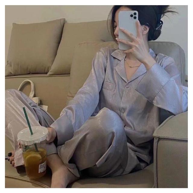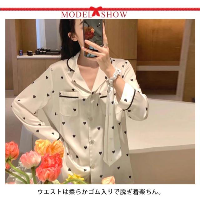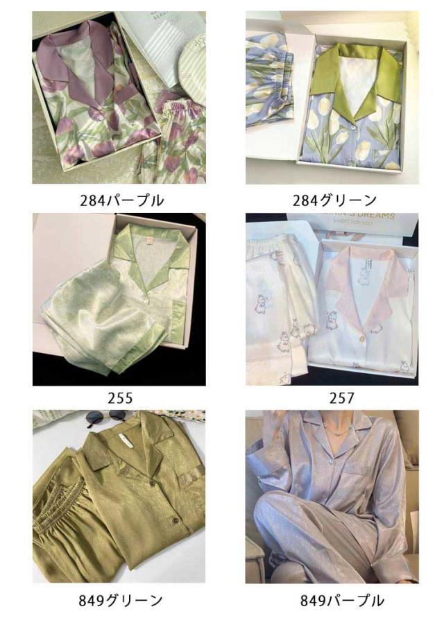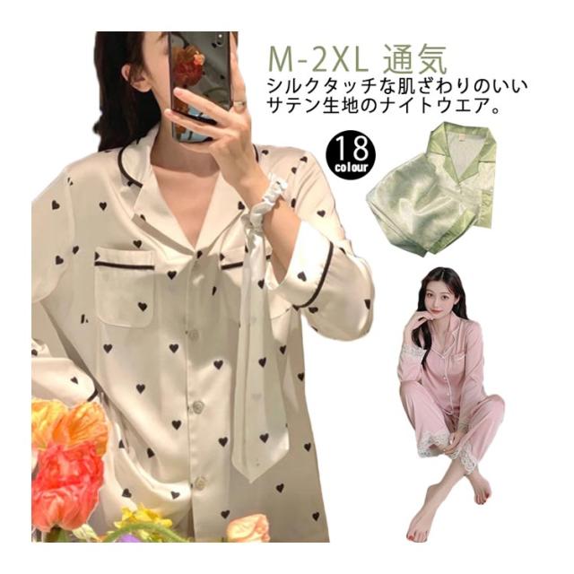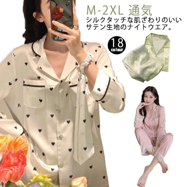 春夏 長袖 上下セット 春秋 長ズボン レディース ルームウェア 前開き 通気 襟付き トップス サテンパジャマ シルクタッチ 薄い パジャマ 大きいサイズ ゆったり