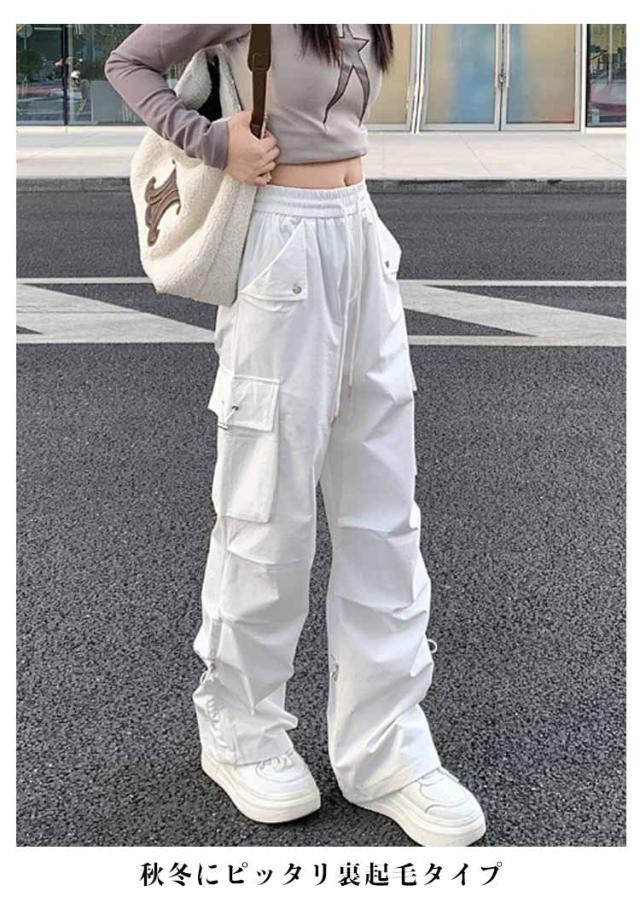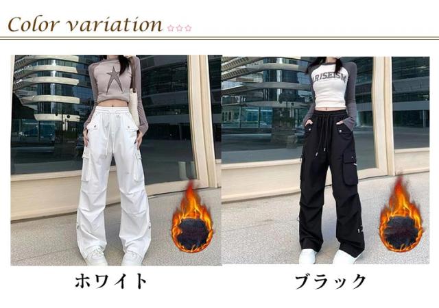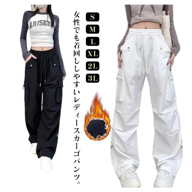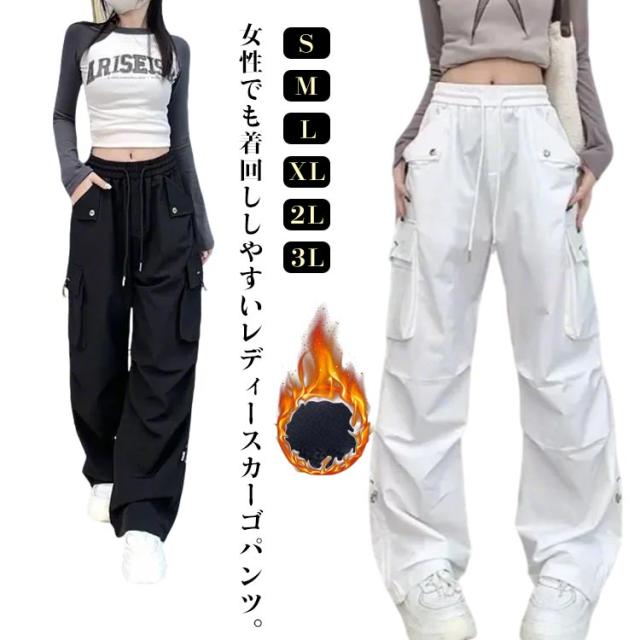 カーゴパンツ シンプル かわいい 裏起毛 ワイド レディース ルーズ カーゴパンツ ボトムス おしゃれ 無地 冬 動きやすい ヒップホップ 女性用 秋 ジョガーパンツ サイドポケット ウエストゴム 作業着 カジュアル