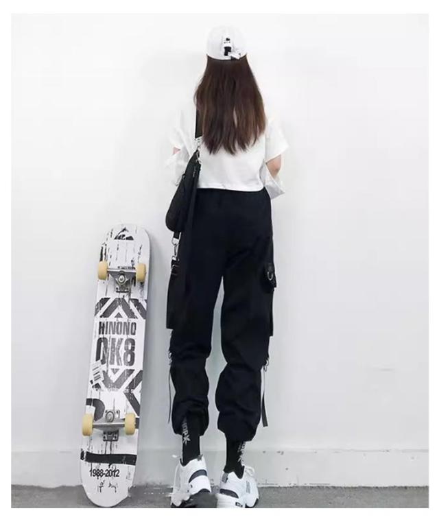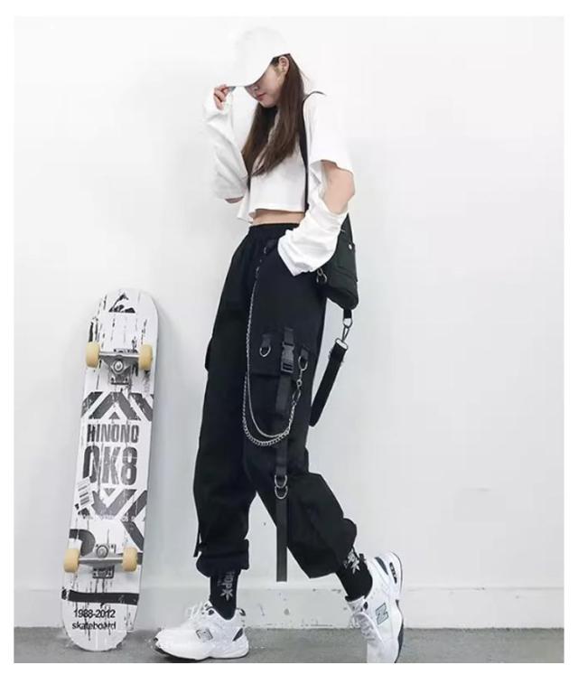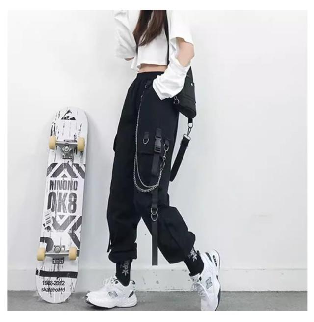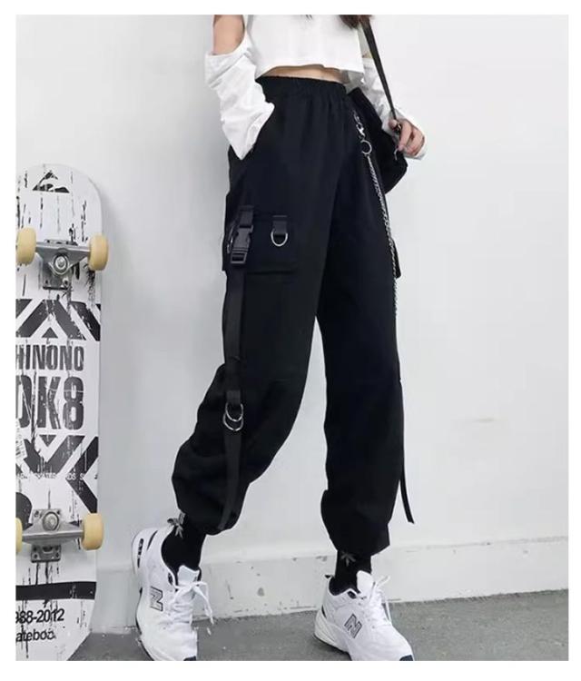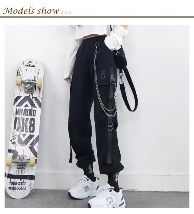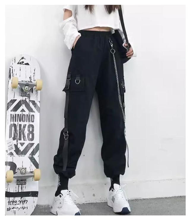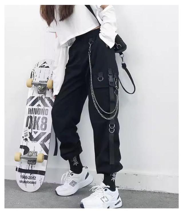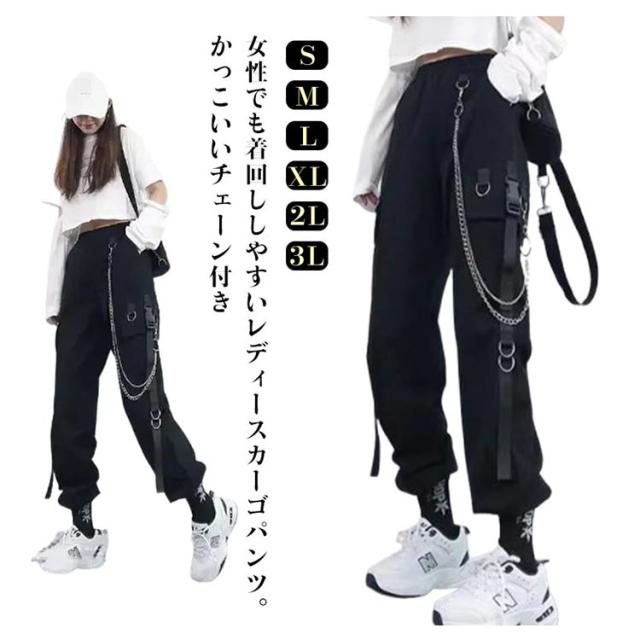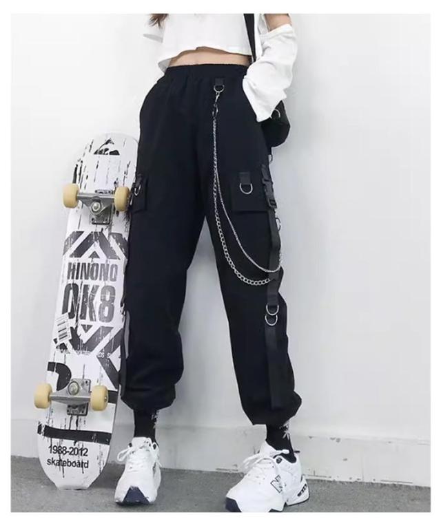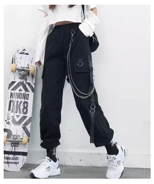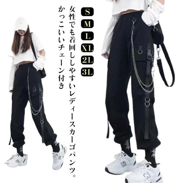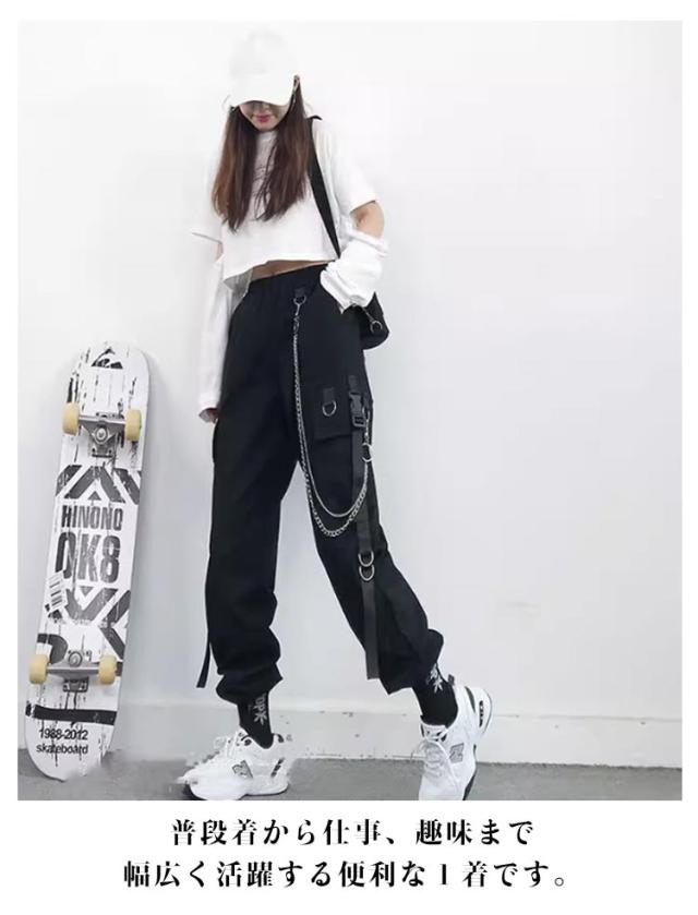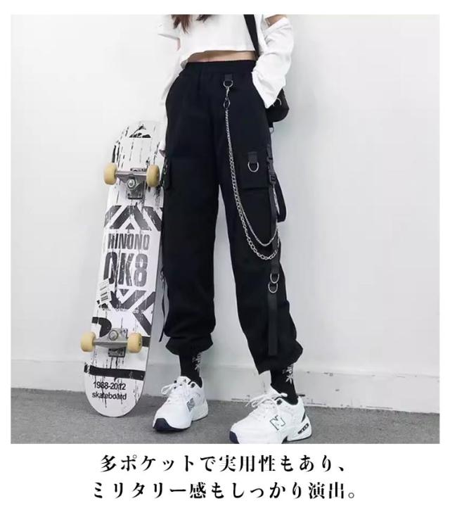 無地 ヒップホップ ボトムス ルーズ ズボン チェーン付き かっこいい ワイド レディース 春 カーゴパンツ ウエストゴム 女性用 サイドポケット 夏 秋 薄手 カーゴパンツ 動きやすい 作業着 カジュアル ストリート おしゃれ