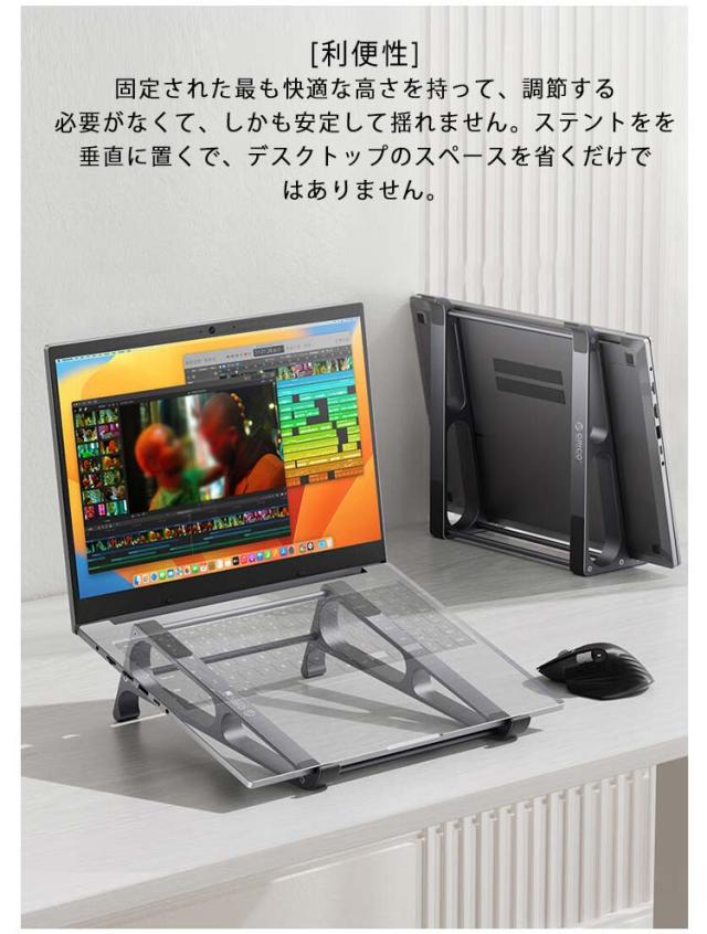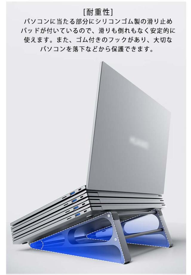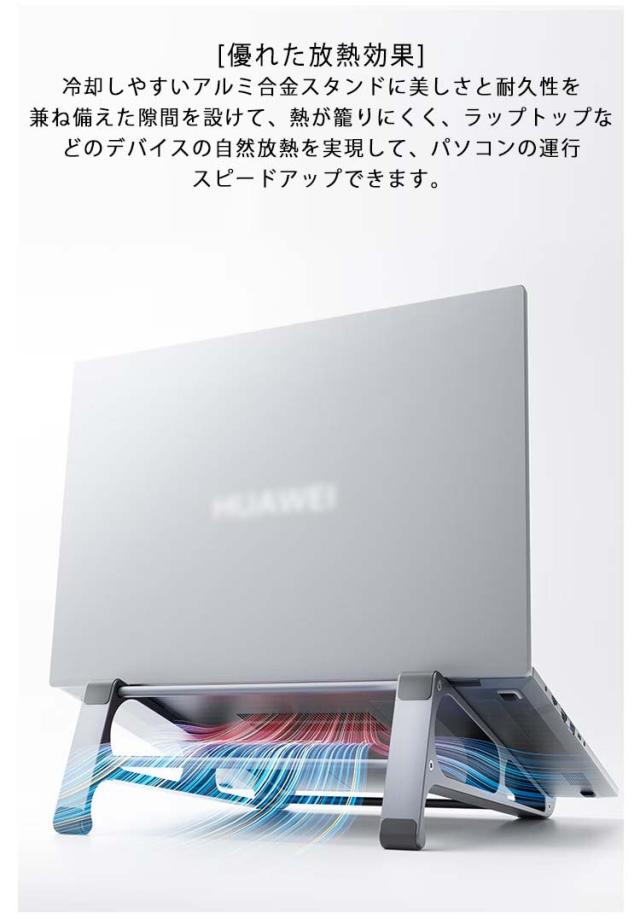 | [利便性]固定された最も快適な高さを持って、調節する必要がなくて、しかも安定して揺れません。ステントをを垂直に置くで、デスクトップのスペースを省くだけではありません。 [耐重性]パソコンに当たる部分にシリコンゴム製の滑り止めパッドが付いているので、滑りも倒れもなく安定的に使えます。また、ゴム付きのフックがあり、大切なパソコンを落下などから保護できます。 [優れた放熱効果]冷却しやすいアルミ合金スタンドに美しさと耐久性を兼ね備えた隙間を設けて、熱が籠りにくく、ラップトップなどのデバイスの自然放熱を実現して、パソコンの運行スピードアップできます。 [収納便利]仕様で、収納や持ち運びにも便利です。家でも会社でも喫茶店でもどこでも便利に使えます。また、出張とか旅行とかの場合にも適用しています。 | |