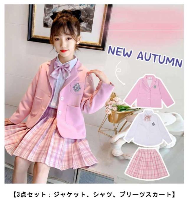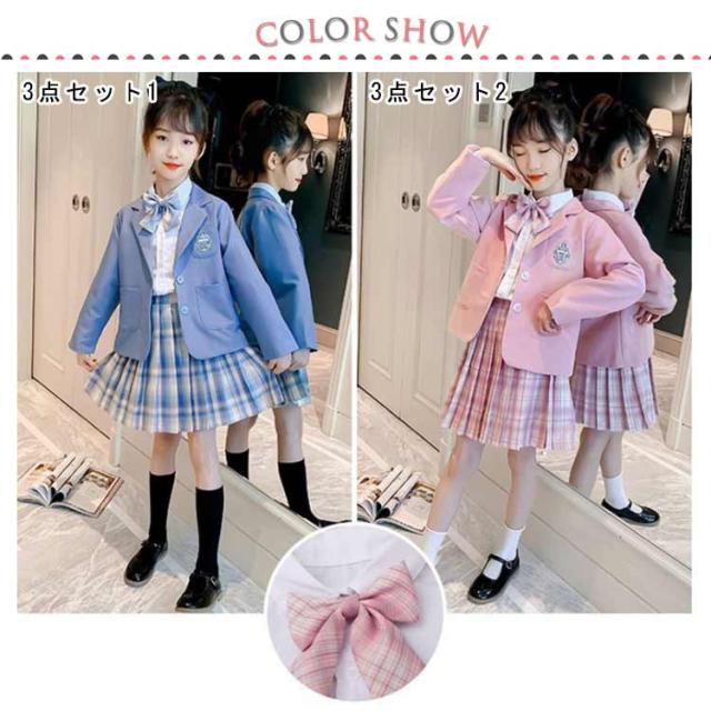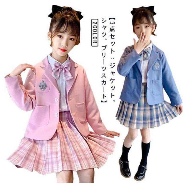 女の子 学生服 ブラウス シャツ セット 3点セット スカート プリーツスカート コスプレ JK テーラードジャケット JK ジャケット 女子 フォーマルスーツ フォーマル春 女の子 ブレザー 110cm 120cm 130cm 140cm 150cm 160cm