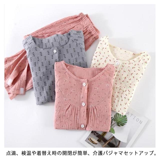 | ガーゼ綿素材を使用!点滴、検温や着替え時の開閉が簡単、介護パジャマセットアップ。 車椅子をご利用の方にも自分で着脱できます。 体不自由な方や着替えが困難な方をサポートする介護用パジャマです。 寝たり座ったりの状態でも着脱が簡単。 肌ににストレスを与えず、心地よく眠るための工夫をこらしたパジャマです。 快眠を与えるための要素を備えた綿素材で春夏秋冬、一年中過ごしていただけます。 エアコンの効いた施設(病院など)にも最適!お肌の弱い方や敏感肌の方も気楽に着られます。 | |