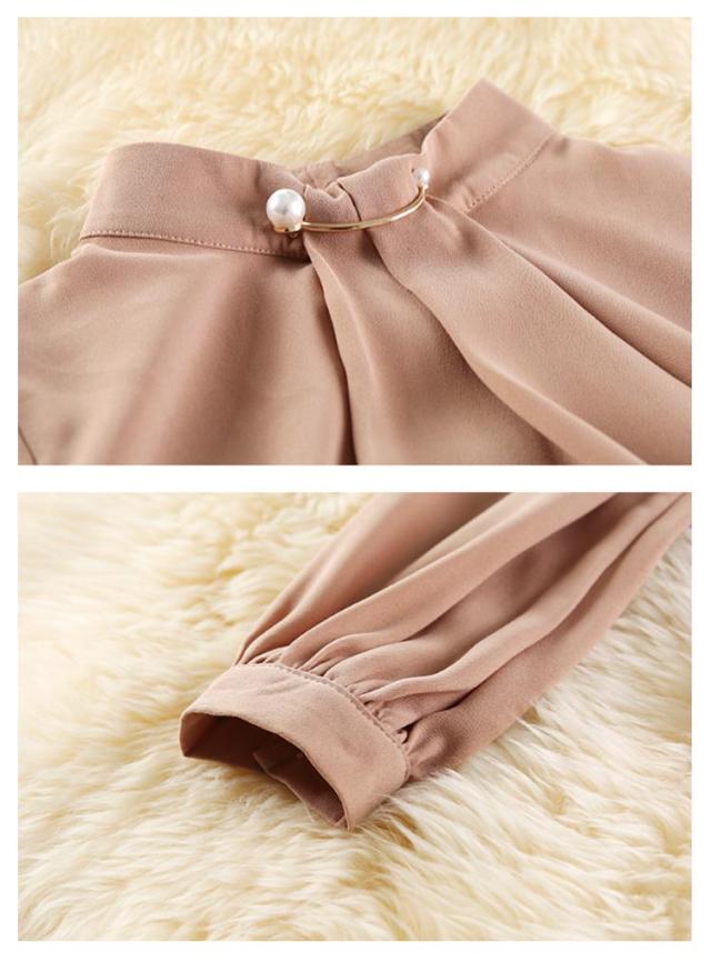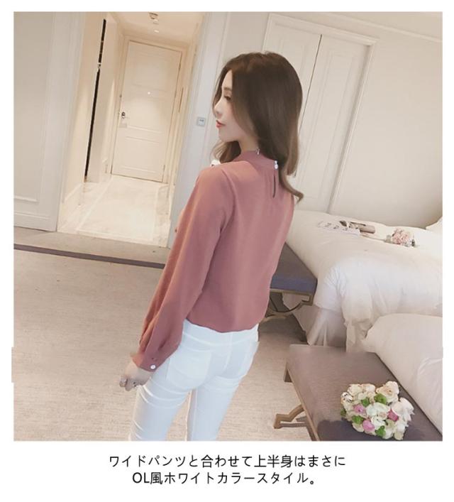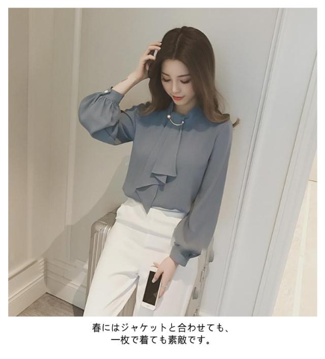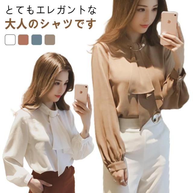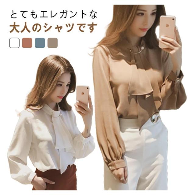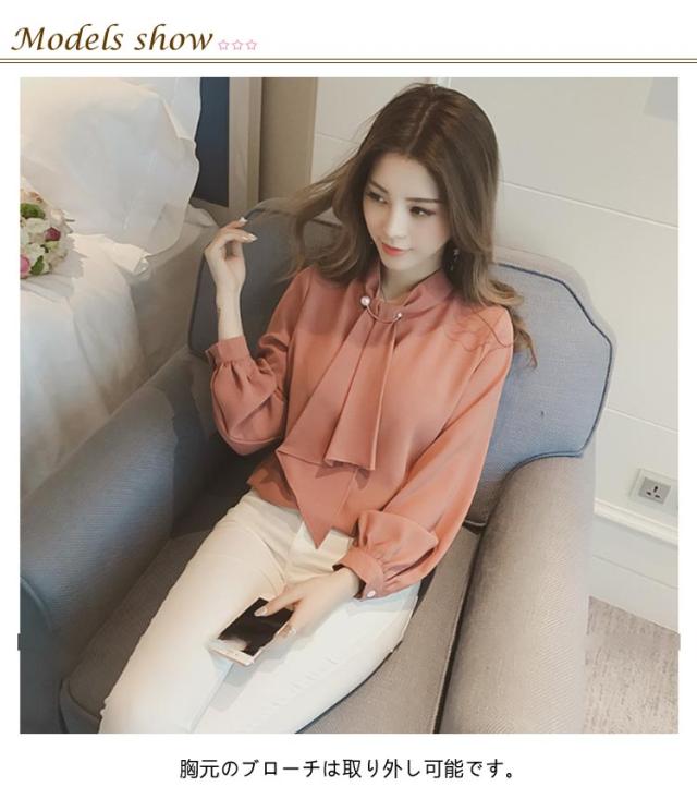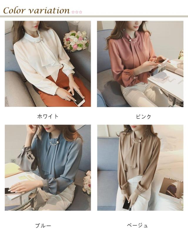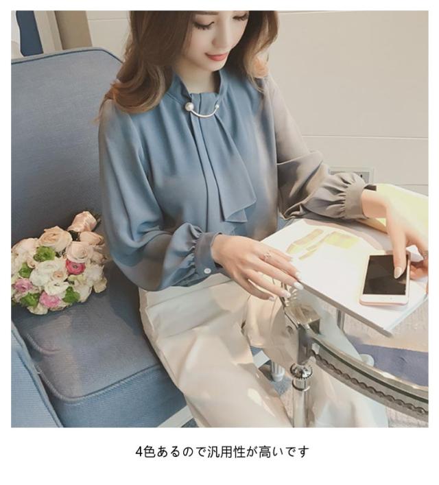 カットソー パールブローチ オフィス スーツ ボウタイ インナー スカーフタイ レディース 長袖 ブラウス 襟付き シフォン トップス 春 夏 秋 大きいサイズ きれいめ