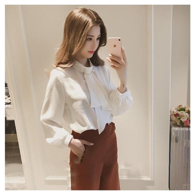 | とてもエレガントな大人のシャツです。 胸元のブローチは取り外し可能です。 ワイドパンツと合わせて上半身はまさにOL風ホワイトカラースタイル。 衣装はシフォン素材です。 春にはジャケットと合わせても、一枚で着ても素敵です。 4色あるので汎用性が高いです | |