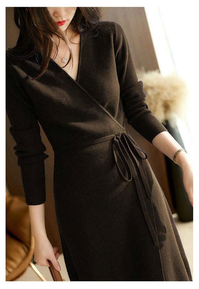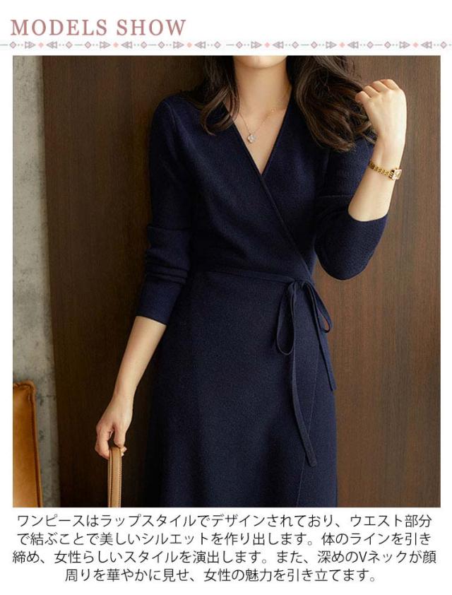 ニットワンピース ニットワンピース 秋 長袖 タイト 冬 秋冬 きれいめ 春 vネック 結婚式ワンピース 大人可愛い ラップワンピース 二次会 お呼ばれ カジュアル ママ
