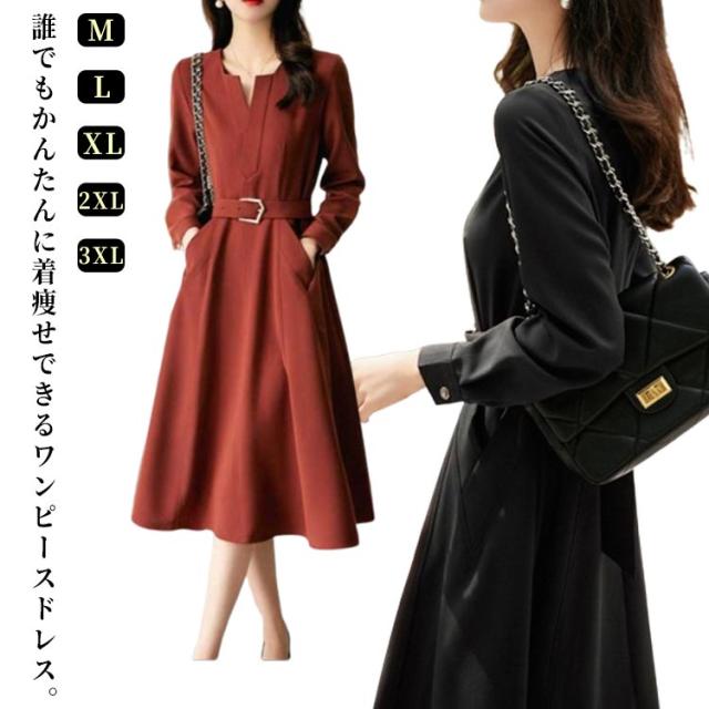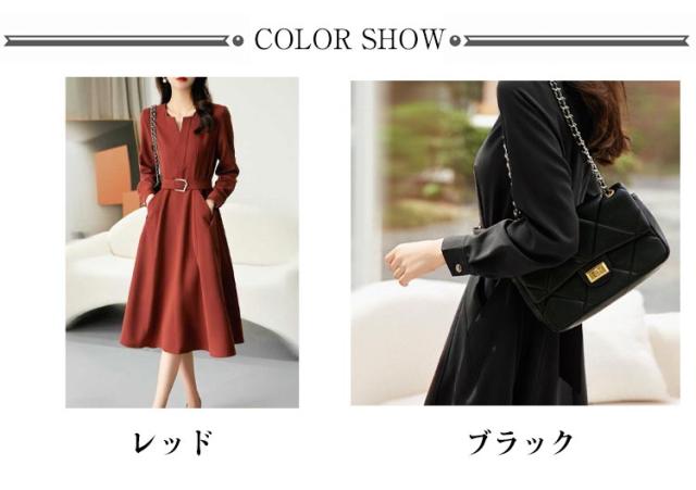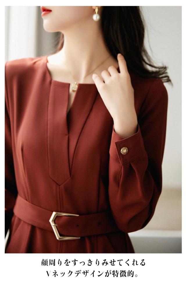 スーツワンピース ワンピース 長袖 春 セレモニー ドレスワンピース 膝丈 レディース 薄手 秋 学校行事 Vネック フォーマル レディース 面接 OL オフィス