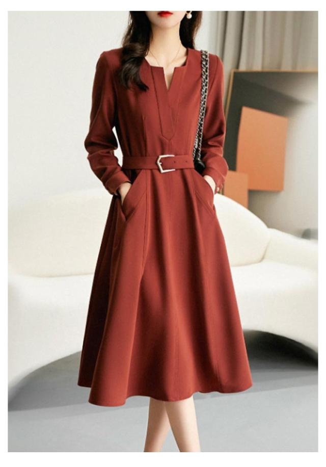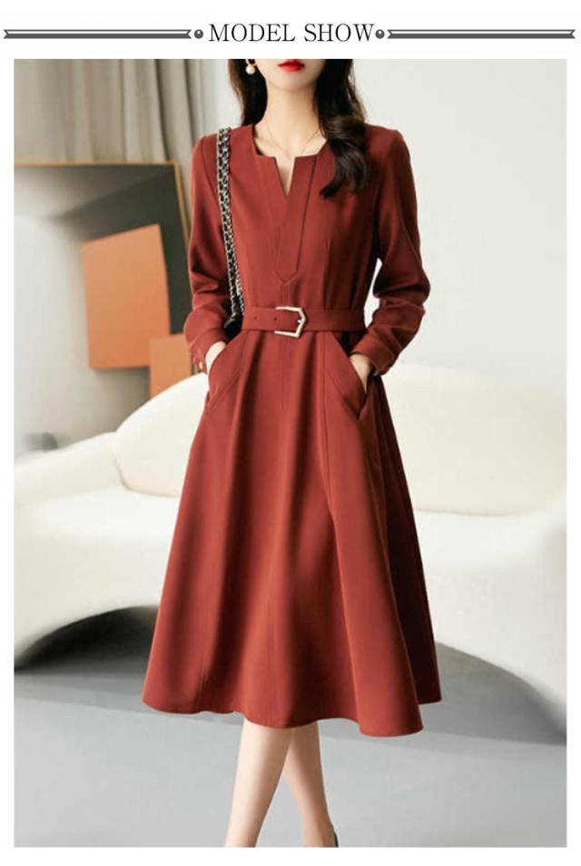 | 誰でもかんたんに着痩せできるワンピースドレス。 顔周りをすっきりみせてくれるVネックデザインが特徴的。 広がりすぎないフレア感とAライン&スリムなシルエットで、女性らしさを演出。 結婚式の二次会やパーティー、演奏会、お呼ばれ等のフォーマルな場面で、知的な印象を与えてくれます。 | |