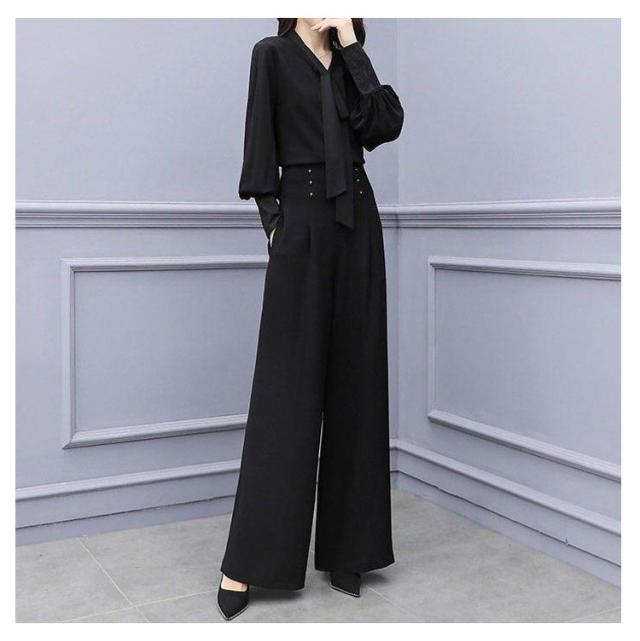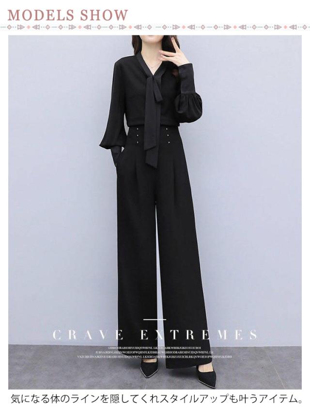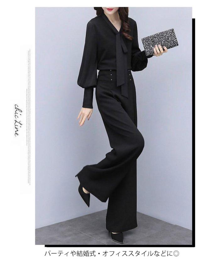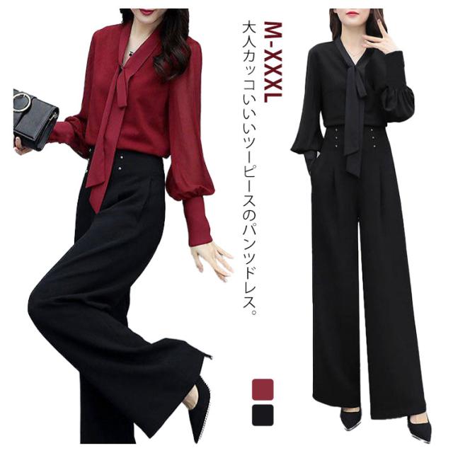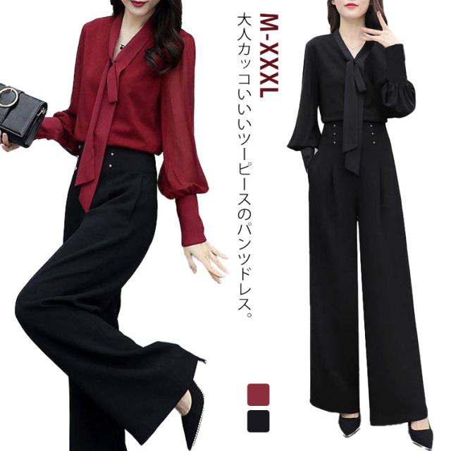 大きいサイズ 体型カバー 長袖 上下セット パーティードレス 卒業式 結婚式 2点セット ガウチョパンツ パンツドレス きれいめ ブラウス vネック ワイドルーズ パンツドレス OL 入園式 パンツ シャツ 通勤 セットアップ 入学式 卒業式 ワイドパンツ 通勤 OL 大人 上品 着痩せ