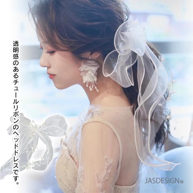 透明感のあるチュールリボンのヘッドドレスです。