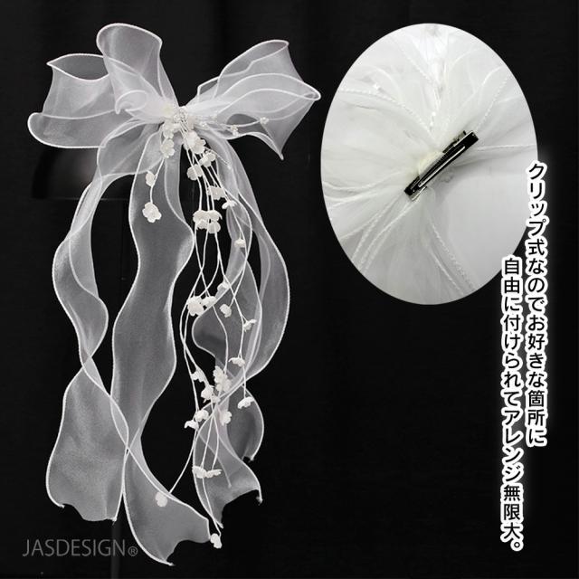 ウェディング 結婚式 ヘッドドレス リボン ヘアアクセサリー 髪飾り コサージュ ヘッドアクセサリー チュール ブライダル リーフ フラワー 花 小花 ツタ ボンネリボン ボンネクリップ かわいい 人気 JM-374