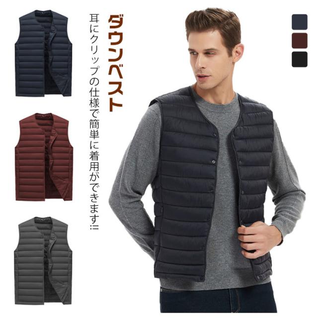 暖かい ジャケット ダウンベスト 中綿入り インナー ダウンベスト 通勤 コート アウター トップス ブルゾン アメカジ 仕事 防風 ビジネス アウトドア 防寒 紳士 おしゃれ ゴルフウェア スポーツ 男性 プレゼント