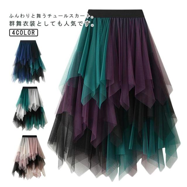 ダンス ふんわりと舞う ロング チュールスカート ボリューム 社交ダンス チュチュ パニエ アシンメトリー チュール ロングスカート バレエ コンテンポラリー スカート ヒップホップ ベリーダンス ダンス コスチューム シフォン ふんわりと舞う ステージ衣装