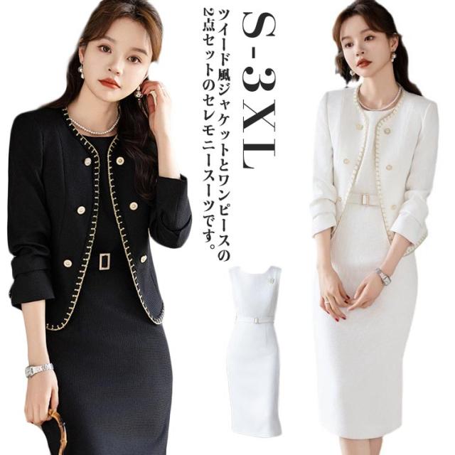 ツイード風 スーツ セレモニースーツ 二次会 ジャケット ママスーツ 入学式 ワンピース 春 卒業式 レディース スーツ 母 大きいサイズ 卒園式 服装 母親 フォーマルスーツ セットアップ 結婚式 入園式 2点セット 入学式 夏 秋 冬 通勤 OL