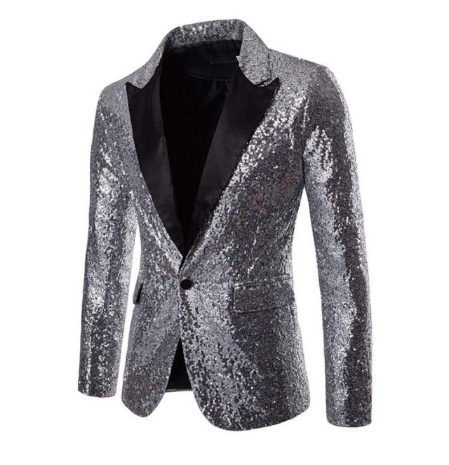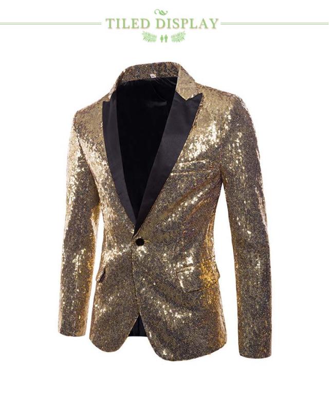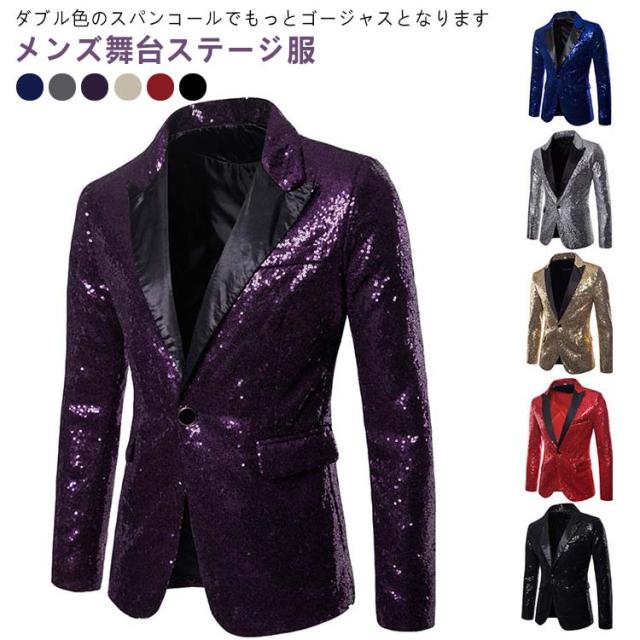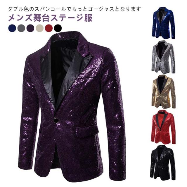 | メンズ舞台ステージ服 ダブル色のスパンコールでもっとゴージャスとなります | |