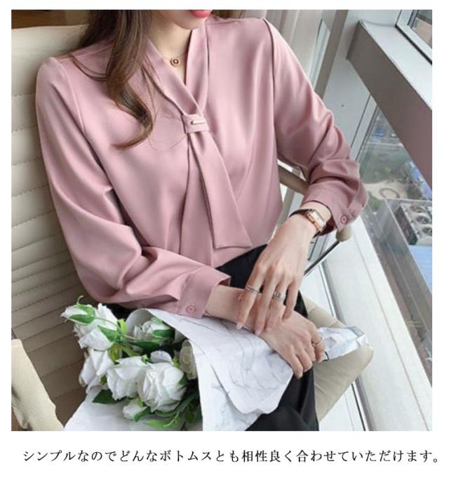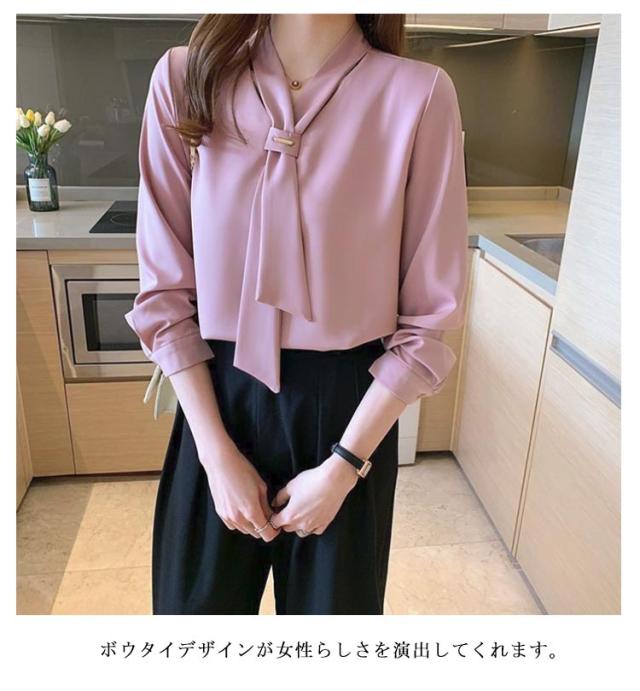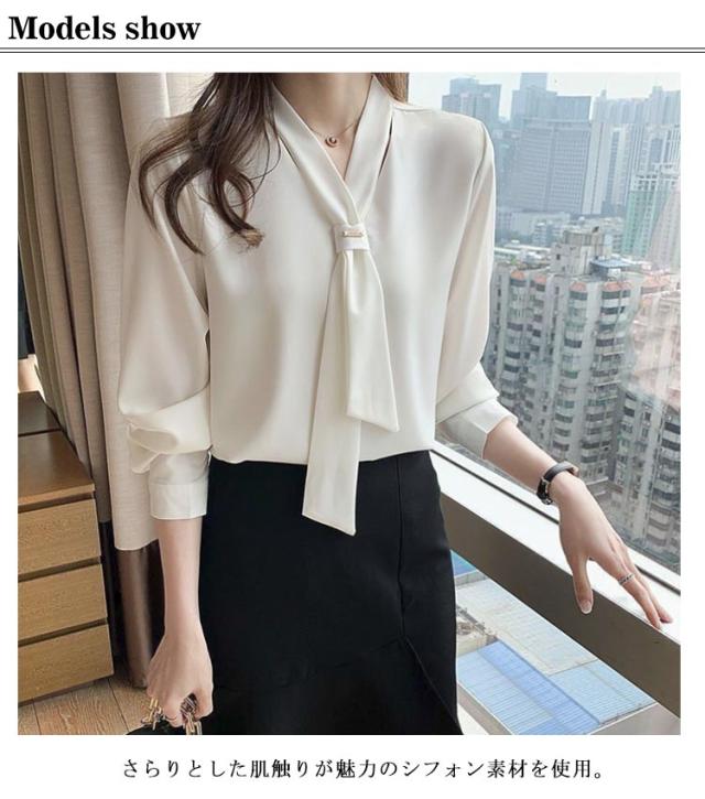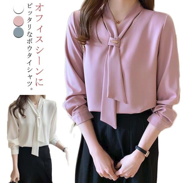 ブラウス ボウタイブラウス リボン Vネック 長袖 ブラウス ボウタイシャツ トップス パフスリーブ シャツ ブラウス シフォン エレガント ビジネス オフィス OL 通勤 大人 可愛い 春夏秋冬