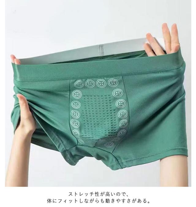| 6枚セット!マイナスイオン効果のあるメンズボクサーパンツ ストレッチ性が高いので、体にフィットしながらも動きやすさがある。 マイナスイオンとマッサージ機能を備える粒子付き、男性としての健康と魅力をサポートしてくれる商品です。 | |