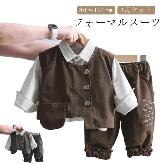 入園式 ベビー服 春 入学式 スーツ 入園式 キッズ 子供服 子供 3点セット ベビー 正装 フォーマル 男の子 冬 法事 卒園式 小学生 秋 赤ちゃん ピアノ 発表会 結婚式 セットアップ シャツ ベスト ズボン パンツ 80 90 100 110 120cm 送料無料