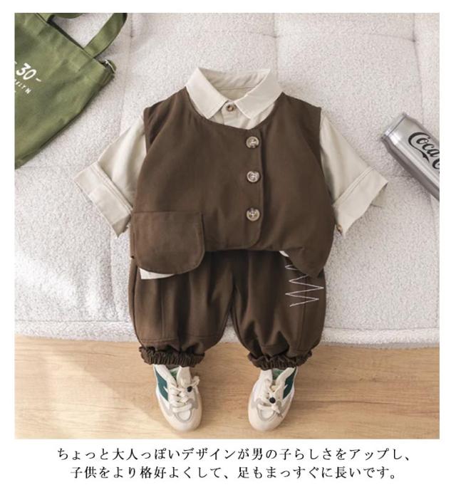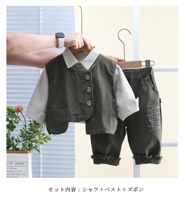 | 【3点セット】【フォーマルスーツ】【80〜120cm】 セット内容:シャツ+ベスト+ズボン カッコ可愛いキッズフォーマルスーツ! 凛々しく見えること間違い無いでしょう! 入園式や卒園式、七五三に結婚式や発表会。 色んなフォーマルシーンで活躍するセットアップ。 ちょっと大人っぽいデザインが男の子らしさをアップし、子供をより格好よくして、足もまっすぐに長いです。 柔らかい素材を使用しているため、お子様の活発な動きを妨げません。 丈夫で通気性があり、耐久性があるので、長く使いたい人におすすめです。 | |