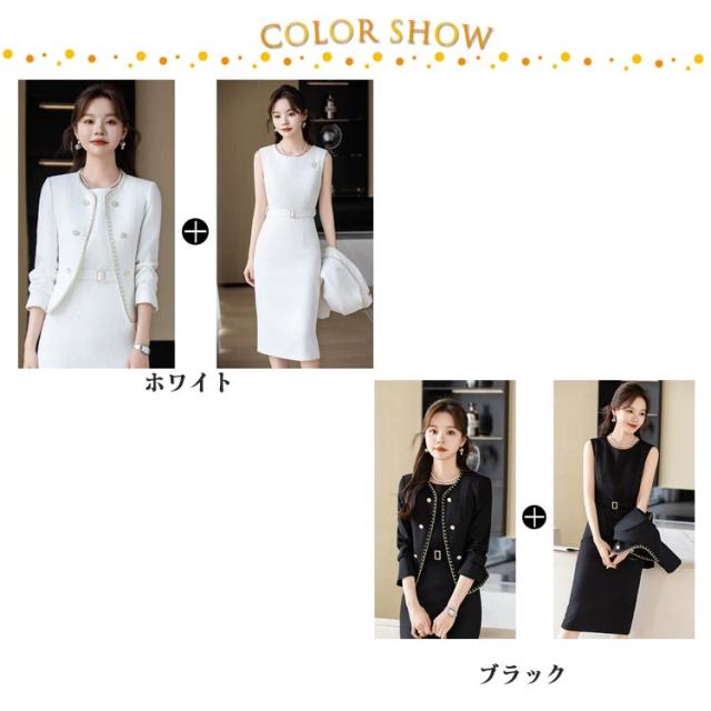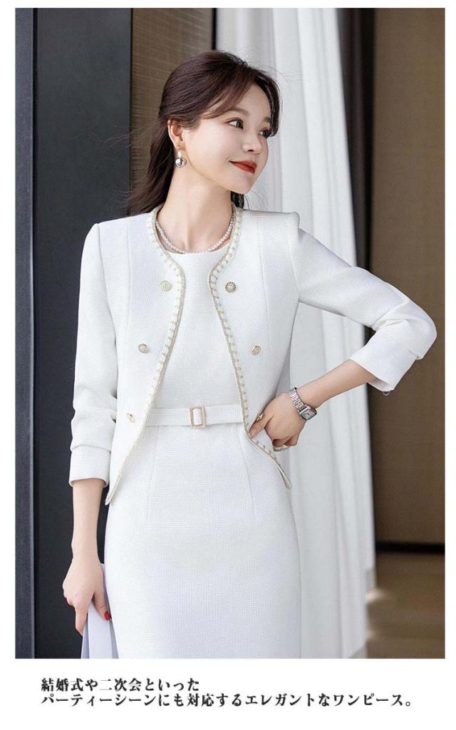 | ツイード風ジャケットとワンピースの2点セットのセレモニースーツです。 ジャケットは細身を演出する立体裁断と、コンパクトなシルエットでスタイルアップして見えるノーカラージャケット。 結婚式や二次会といったパーティーシーンにも対応するエレガントなワンピース。 ジャケットとワンピースそれぞれ単品使いができるところも嬉しいポイント。 入学式・入園式、卒業式・卒園式、冠婚葬祭、お宮参り、七五三、などの服装に悩むママ(母親)にもおすすめです。 | |