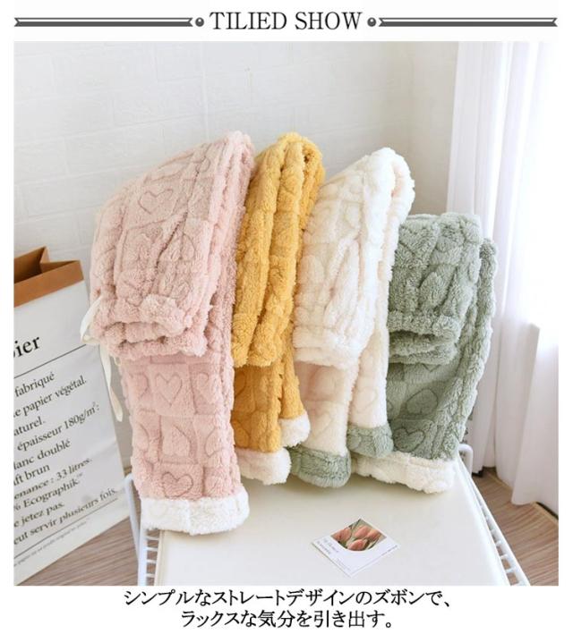 単品 ルームウェア 冬 裏起毛 厚手 大きいサイズ 柔軟 もこふわ パンツ 暖かい 部屋着 ふわふわ ロングパンツ 寝間着 快適 レディース パジャマ 寝巻き 無地 配色 30代 もこもこ 寝ズボン ウエストゴム ワイド 女性 大人 ポケット付き 20代 もこふわ 40代 50代